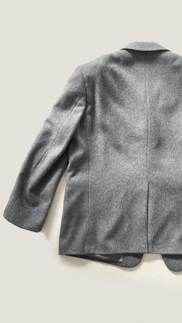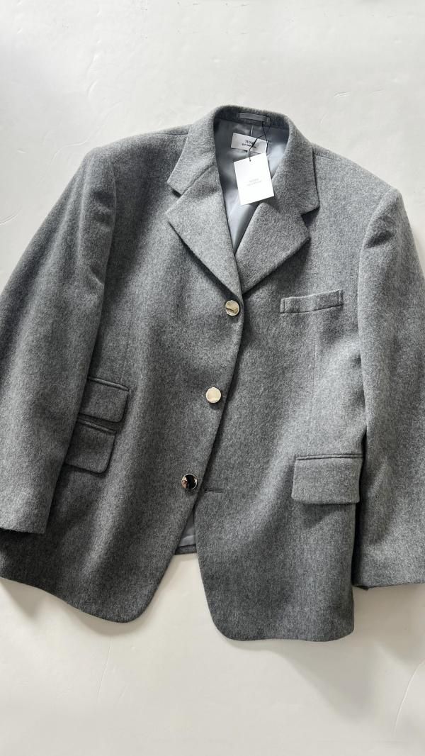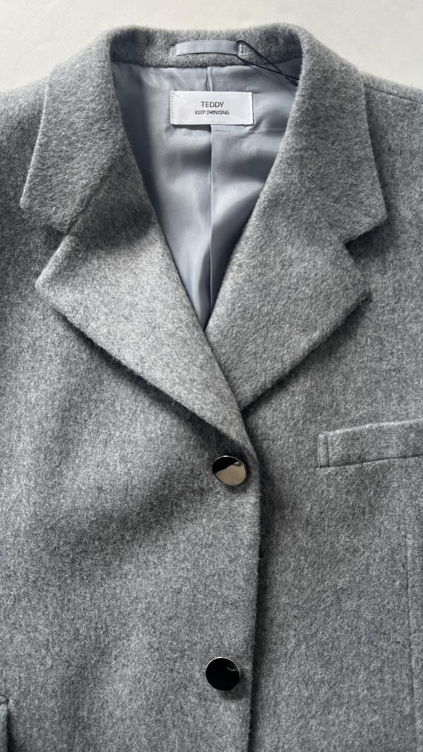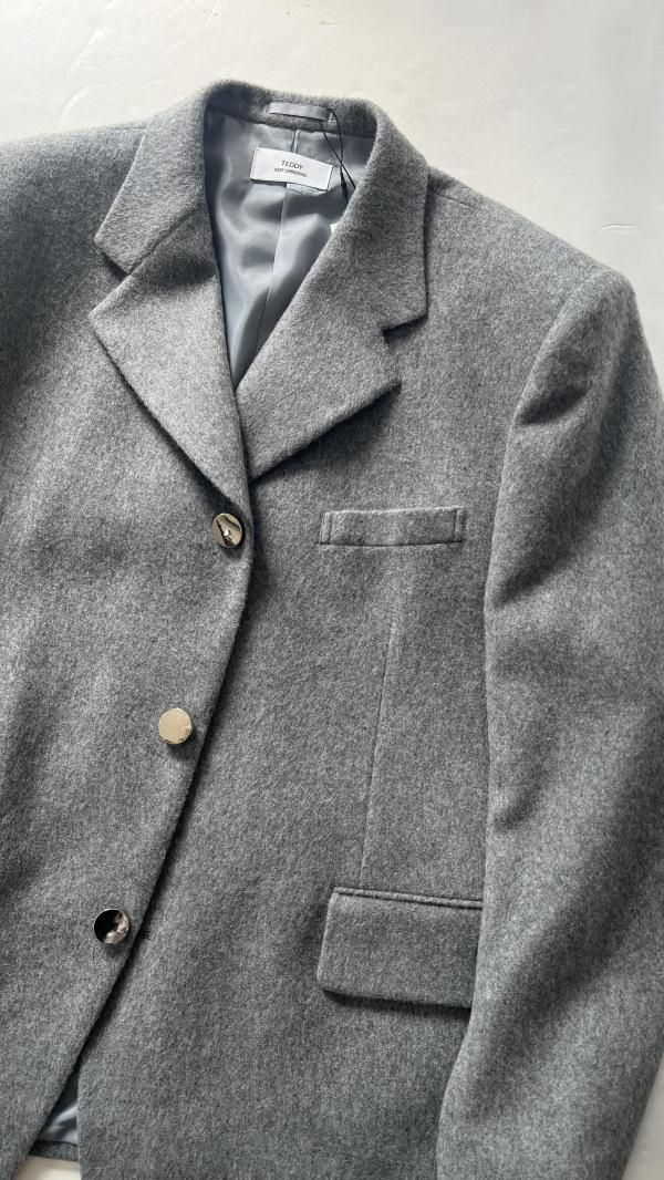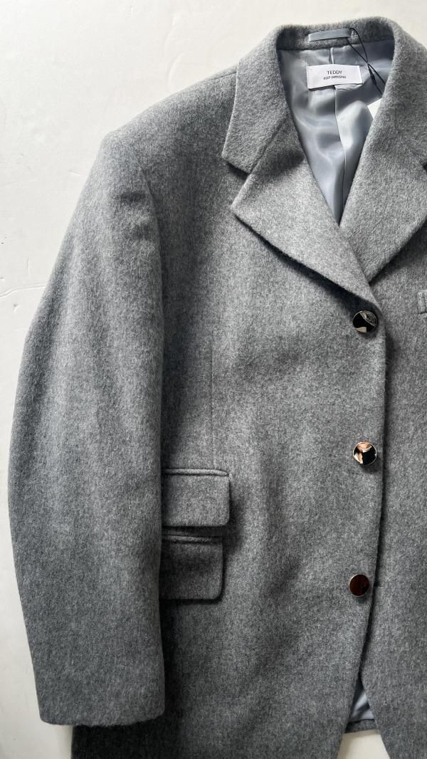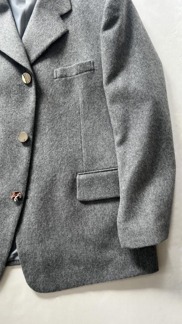メタルボタンがクリーンなムードで、薄手ですが暖かく、長い期間楽しめるデザインです。