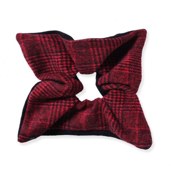レッドタータンのモードなスクエアシュシュ。